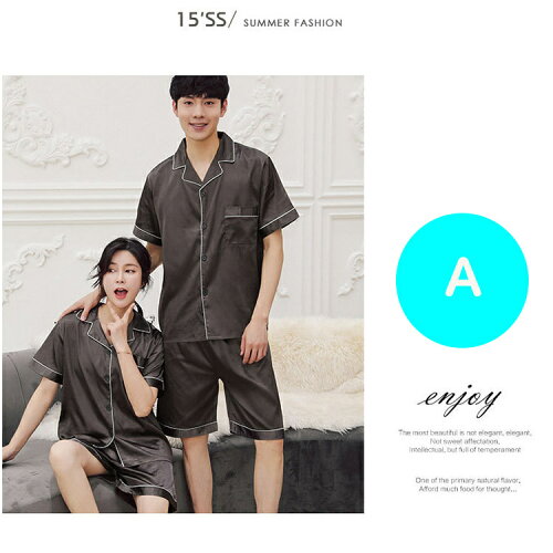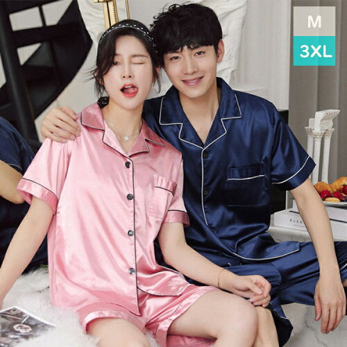 ペアパジャマ 前開き お揃い 寝巻き 寝間着 パじゃマ 夫婦 カップル ペア ルームウェア 上下セットアップ 恋人 カップル パジャマ シルク 結婚祝い ペア パジャマ 春 夏 レディース メンズ 合成シルク パジャマ ペア 半袖 プレゼント なめらか