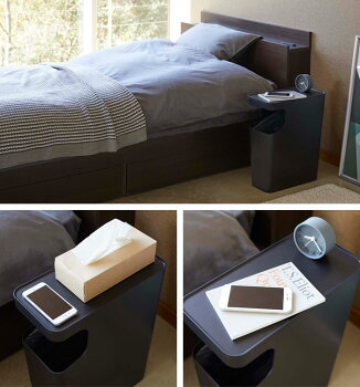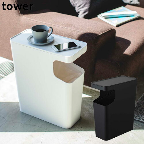 ゴミ箱 サイドテーブル スリム おしゃれ ふた付き 15L スチール製 tower/タワー ブラック/ホワイト ダストボックス&サイドテーブル 寝室 リビング 前開き くずかご テーブル シンプル ダイニング ダストボックス 机 キッチン 山崎実業